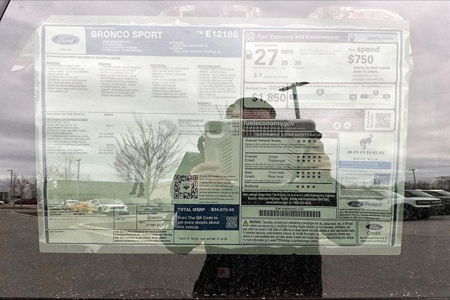 Under the hood, the 1.5L EcoBoost engine paired with an 8-Speed Automatic transmission and 4WD delivers an exceptional blend of power and efficiency, with an EPA-estimated 25 MPG in the city and 30 MPG on the highway. This Bronco Sport is ready to tackle any terrain with confidence.