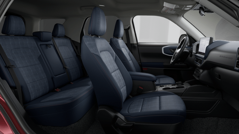 The Bronco Sport Heritage's interior is a harmonious blend of style and functionality. Plaid cloth front bucket seats provide exceptional comfort, while the Ford Connectivity Package keeps you seamlessly connected with 5G internet access and SYNC 4 911 Assist. The spacious cabin and split-folding rear seat offer ample room for your passengers and cargo, making this SUV a versatile companion for any adventure.