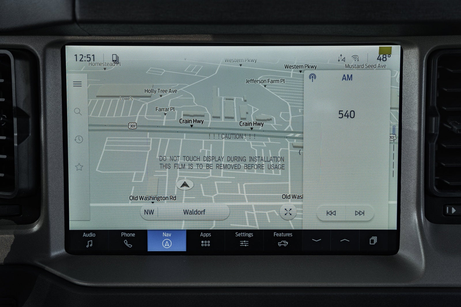 - Connected Navigation -inc: Ford connectivity package, pinch-to-zoom capability, live traffic, predictive destinations and route guidance and One Box search