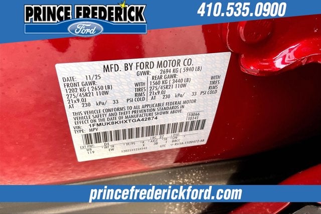 We at PRINCE FREDERICK FORD are driven to provide the finest automotive purchasing and ownership experience by not only meeting the customer's expectations, but consistently exceeding them. Our goal is to become the world's largest volume dealership through an unrivaled DEDICATION TO EXCELLENCE. CALL US AT 1.410.535.0900 OR visit us on the web at WWW.PRINCEFREDERICKFORD.COM. All vehicles are subject to prior sale. Price may include all applicable rebates, incentives, and special offers. See dealer for details. Price does not include applicable tax, title, license, processing, documentation and/or electronic filing fees of $799.$2500 - Retail Customer Cash. Exp. 03/31/2026