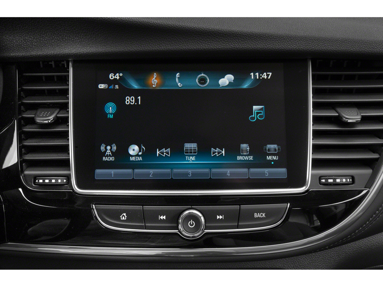 - Audio system, Buick Infotainment System, AM/FM stereo, SiriusXM with 8" diagonal Color Touch Screen, includes 2 USB ports, Bluetooth® streaming for audio and select phones and Phone Integration for Apple CarPlay and Android Auto capability for compatible phone