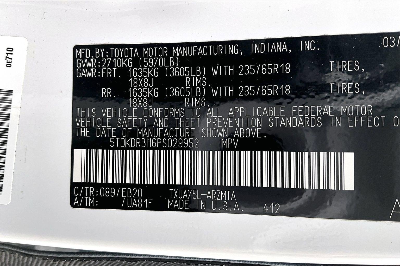 - Rear Tire Size: P235/65VR18