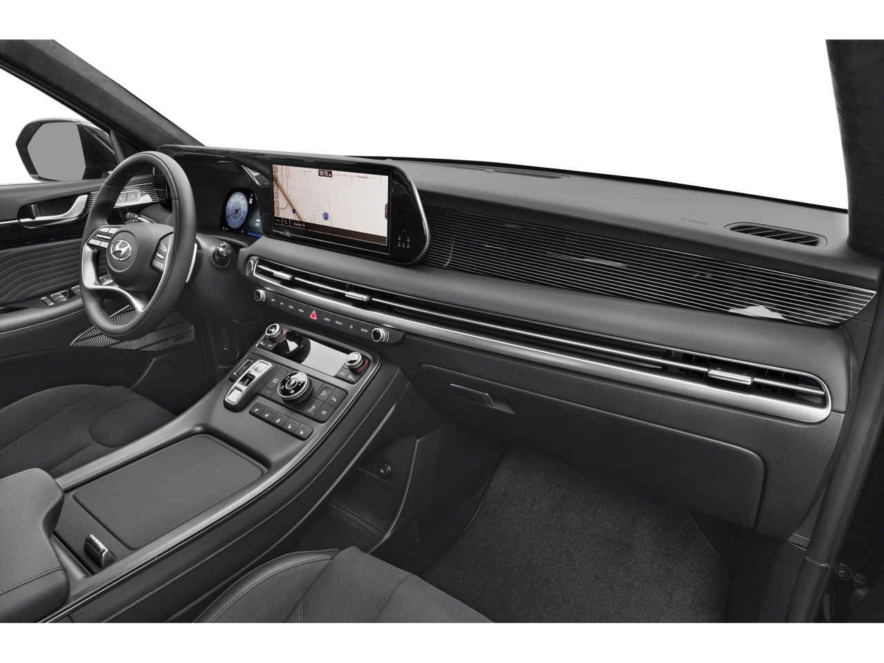- Radio: AM/FM/MP3 Premium Audio System -inc: 630-Watts, Harman Kardon audio system w/12-speakers, Quantum Logic Surround, Clari-Fi, 12.3" color touchscreen display, onboard navigation w/traffic flow including incident data via HD Radio (HERE), Over-the-Air (OTA) map updates, SiriusXM, Android Auto and Apple CarPlay, USB, dynamic voice recognition, rear seat quiet mode, passenger talk (in-car intercom), Bluetooth® hands-free connectivity w/multiple device connection and Bluelink Connected Car System